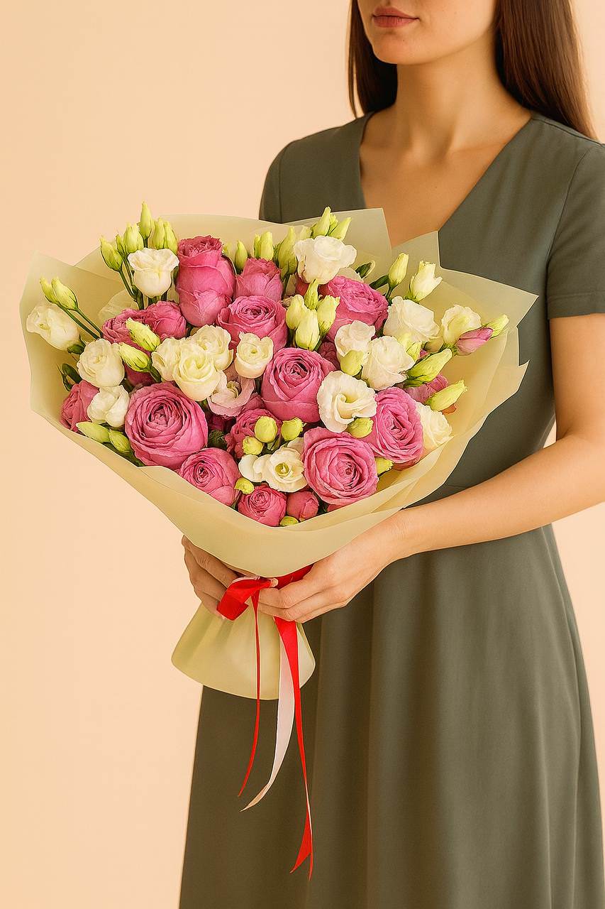 Букет «Розовая нежность» — утончённый и стильный подарок, который передаёт тепло, заботу и романтику. Сочетание насыщенных розовых и нежных белых оттенков создаёт гармоничный и выразительный образ.