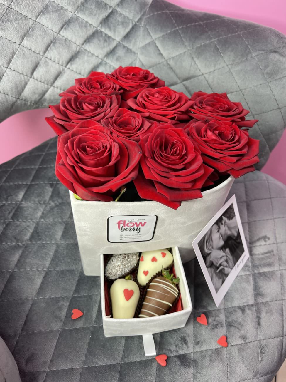 Коробка «Влюбленное сердце» - букет, который сочетает в себе идеальную упаковку и выразительный стиль композиции
