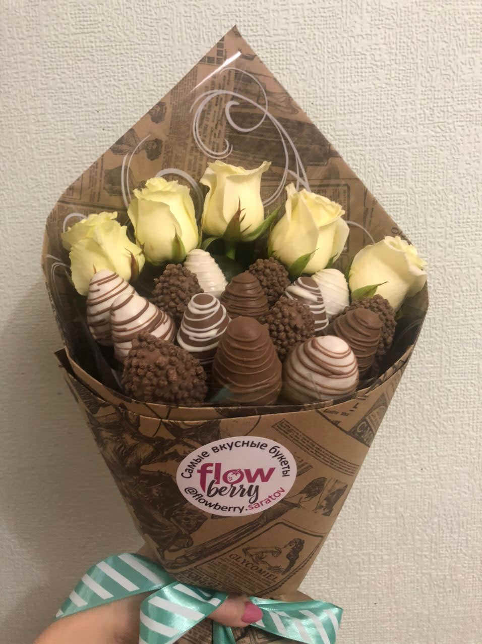 Сестренка в восторге! ???...Оформляла заказ клубничного букета на сайте, мне профессионально помогли с выбором букета для сестренки!