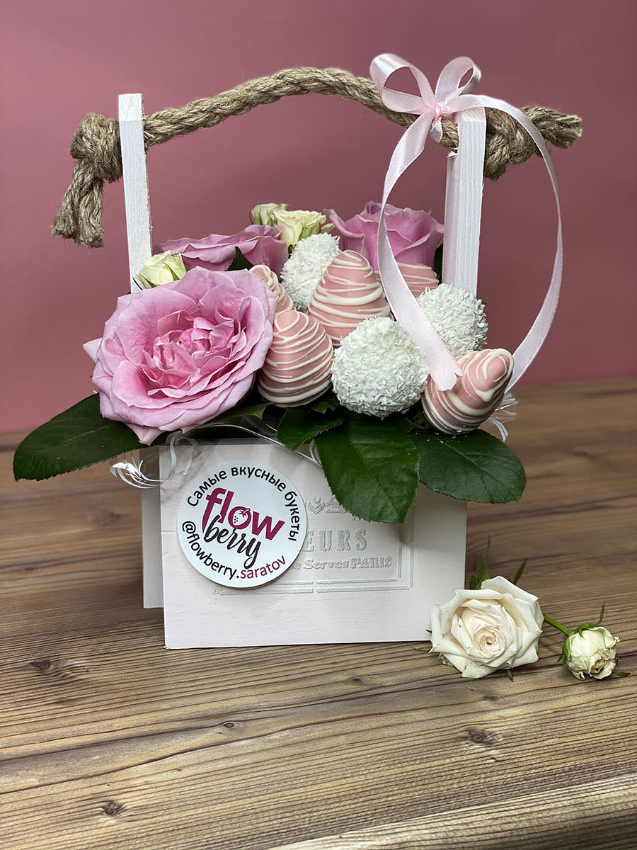Ягода в шоколаде «Ящик счастья» - букет, который сохраняет свою грацию благодаря элегантному стилю